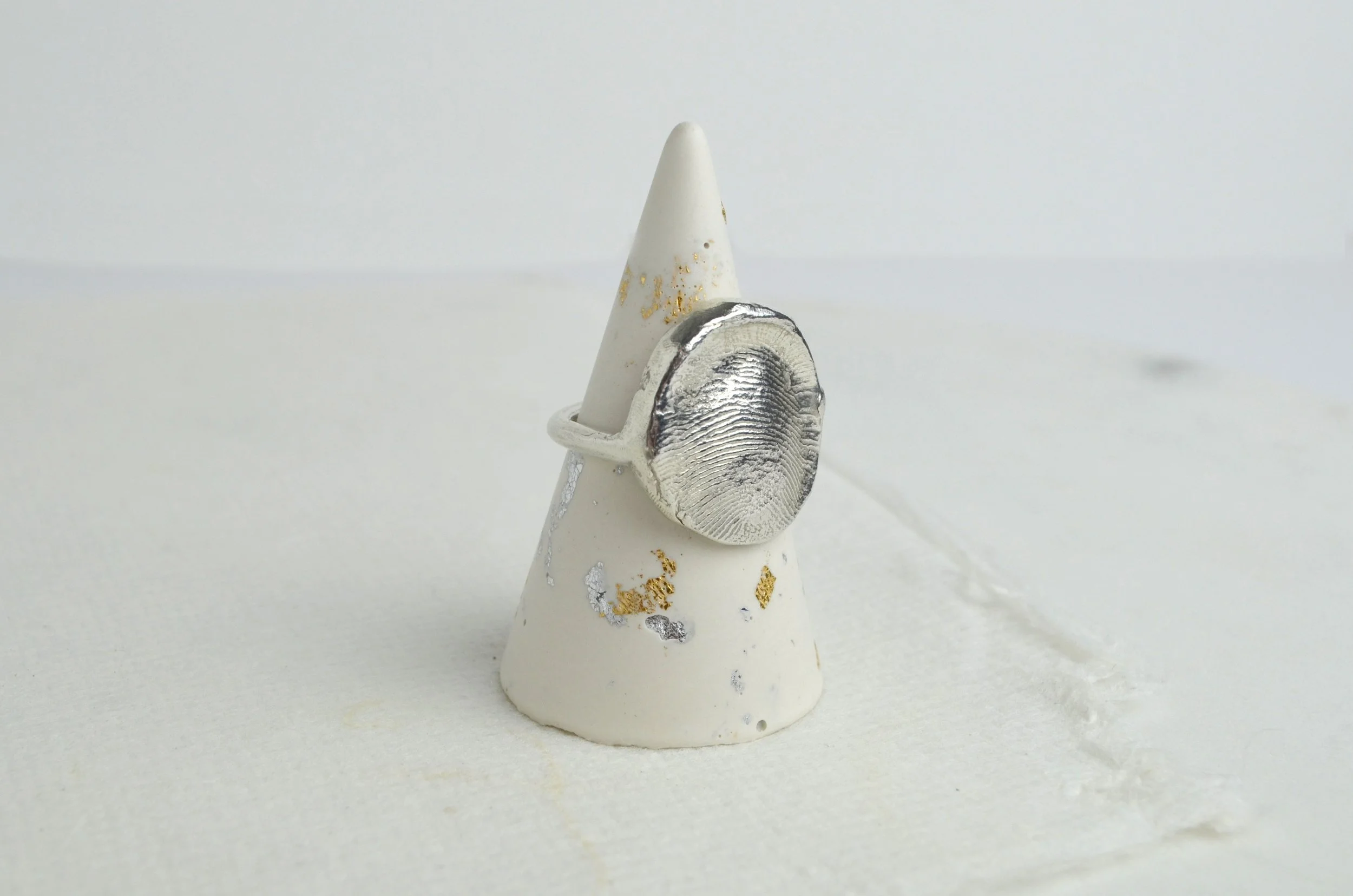 Her jewellery takes inspiration from all kinds of stories, such as spiritual and cultural traditions, interesting symbols, words of wisdom, to old myths and legends, as well as more personal narratives which are captured by her customers through collections such as her fingerprint and imprint jewellery.